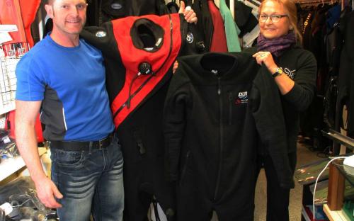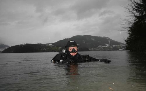 Pünktlich zu Weihnachten war es nun soweit, dass mein neuer DUI Trockentauchanzug geliefert wurde. Nach mehrmaligem testen, hatte ich mich für einen Neoprentrocki CF 200X mit allen Extras was DUI und BTS derzeit zu bieten haben entschieden. Wir machten uns gleich auf den Weg zum Händler unseres Vertrauens Tauchshop Krenn nach Bad Reichenhall um den Trocki abzuholen. Geplant war, vorher noch im Attersee einen Tauchgang zu machen, doch leider hatte Übernacht der Regen und die Schneeschmelze eine braune Brühe aus dem See gemacht. Da wir eine Ewigkeit schon nicht mehr im Mondsee getaucht waren, versuchten wir unser Glück dann noch dort und siehe da, bei der Harnischwand sah die Sicht ganz gut aus, so konnten wir doch noch einen schönen Tauchgang bei ca. 5 – 7 m Sicht machen. Voller Vorfreude ging`s anschließend weiter zu Zdenka und nach Anprobe stand fest, der Trocki sieht nicht nur toll aus, sonder passt auch perfekt. Vielen Dank hier an Zdenka für die gute und fachkundige Beratung.