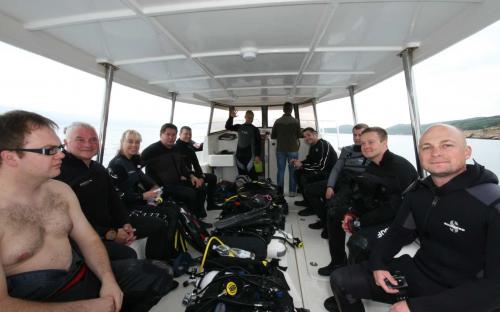 Am Sonntag konnten wir leider das geplante Wrack der Lina nicht anfahren, mit schön bewachsenen Unterwasserbergen und einer kleinen Höhle bei der Insel Plavnik, konnte dann die Enttäuschung aber relativ gering gehalten werden. Am Abend fuhren wir zum gemeinsamen Abendessen in die berüchtigte „Räuberhöhle“, wo wir mit kroatischen Spezialitäten das schöne verlängerte Wochenende ausklingen ließen.