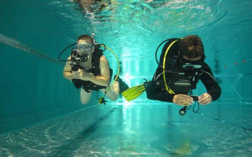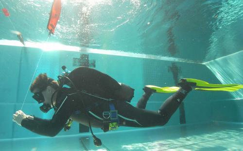 Am Samstag begannen wir mit Oliver im Schwimmbad seine Tarierung zu perfektionieren, mit dabei war auch wieder Stefan, der seinen AOWD und Nitrox Spezialkurs Kurs abschließen wollte. Bevor wir starteten, ließen wir Viki beim Schnuppertauchen noch ihre ersten taucherischen „Gehversuche“ machen. Da Oliver die Schwimmlage und Flossenschläge schnell Intus hatte, konnten wir gleich im Schwimmbad noch Kompasskurs und ordentliches Buddyverhalten trainieren. Danach ging`s dann ab in die Resilacke wo wir bei mäßiger Sicht dann das Navigieren gut üben konnten. Am späten Nachmittag erledigte Stefan noch den Nitrox Test und so können wir ihm nun zum erfolgreichen Kursabschluss gratulieren.