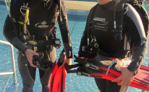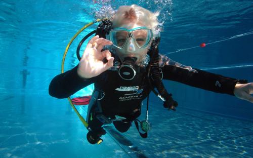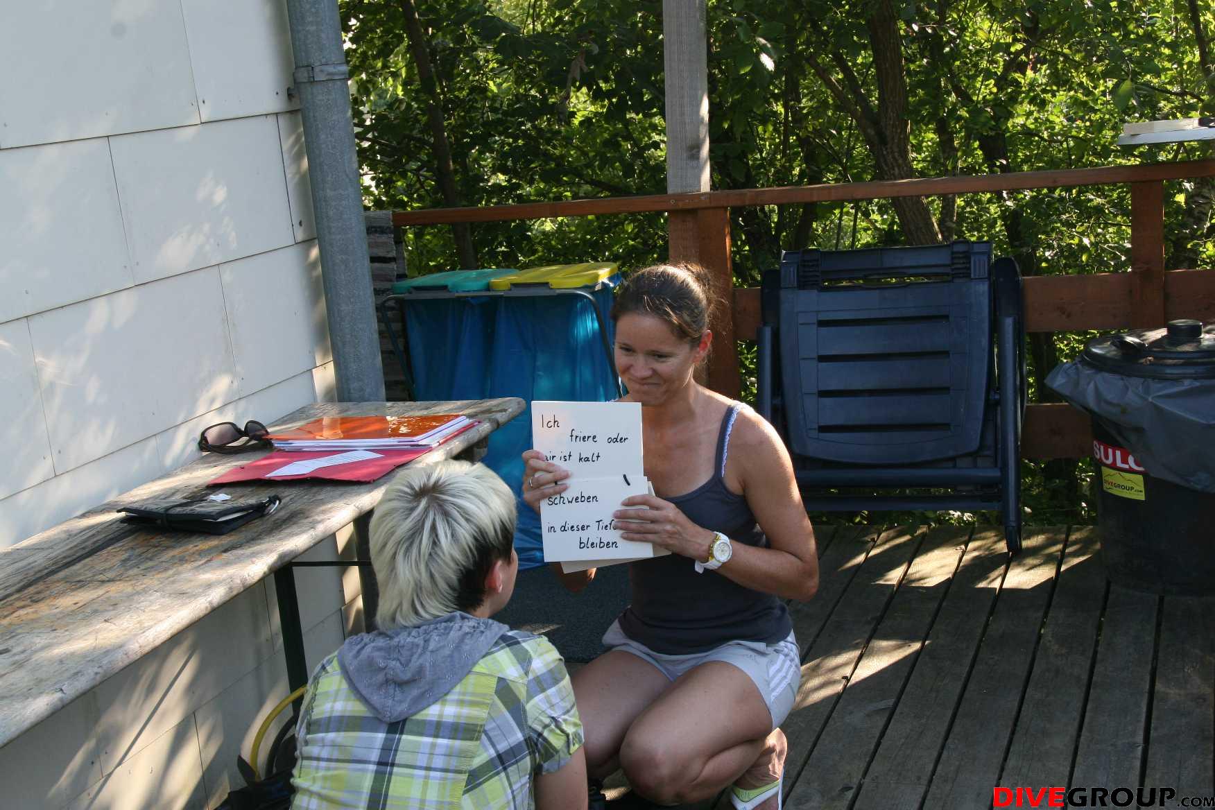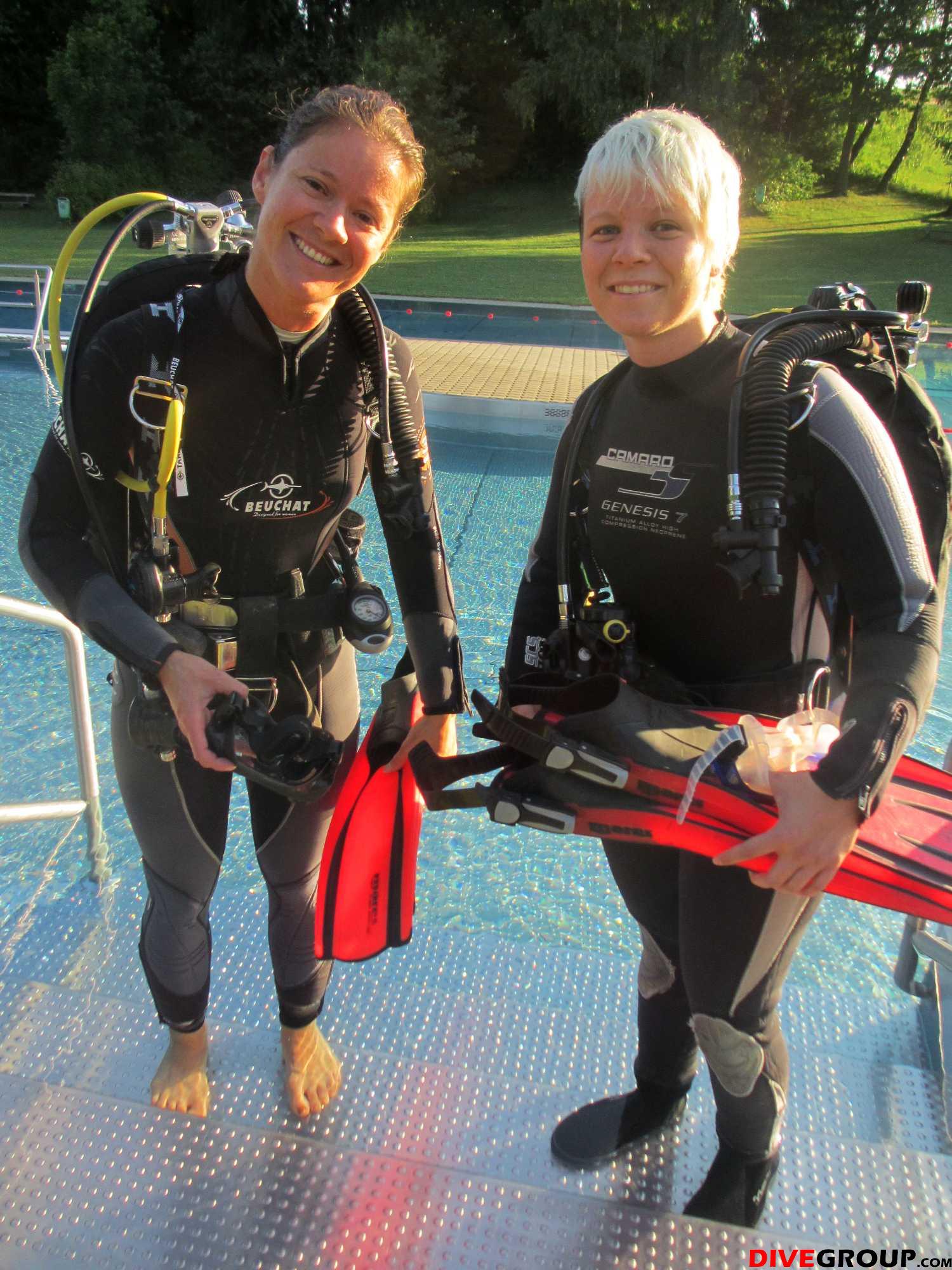 Samstag waren wir bereits um 7 Uhr im Freibad um mit Sandra den OWD Kurs zu beginnen, sie hat sichtlich Spaß am Tauchen und bewältigte alle Anforderungen fast spielend. Am Nachmittag wurde Theorie gemacht und AOWD Kursteilnehmer Oliver machte mit Siegi in der Resilacke noch einen Check - Tauchgang fürs bevorstehende Tieftauchtraining.