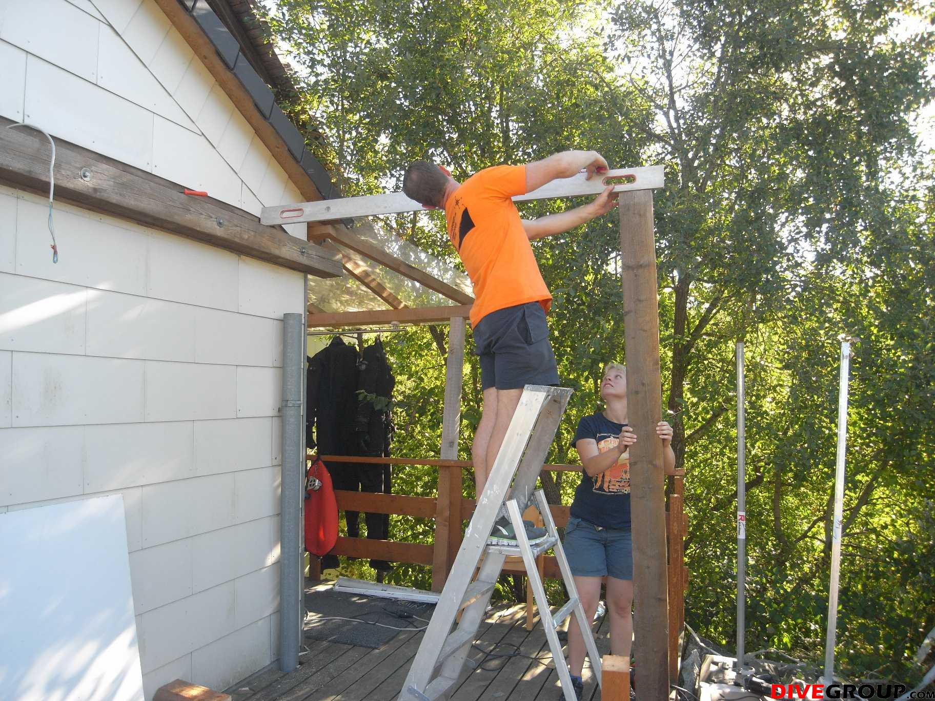 Nach längerer Planung war es am Wochenende soweit, unsere Vereinshausterrasse bekommt ein Dach über dem Kopf, so können wir zukünftig auch bei nicht so schönem Wetter auf der Terrasse grillen und gemütlich beisammen sitzen. Hier gilt ein besonderes Dankeschön unserem Neumitglied Sandra für die Planung und bauliche Ausführung gemeinsam mit Siegi.