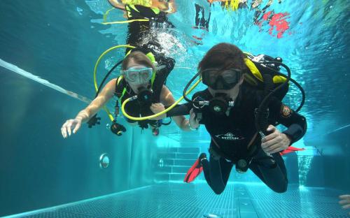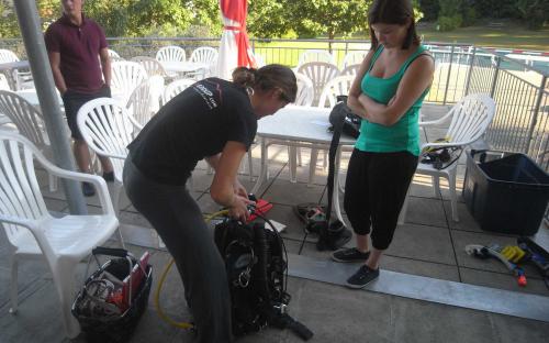Für Victoria begann am Samstag die Tauchausbildung zum „PADI Open Water Diver“, eifrig übte sie mit Gitti im Schwimmbad um schon am Sonntag das erste Mal den Attersee zu erkunden.