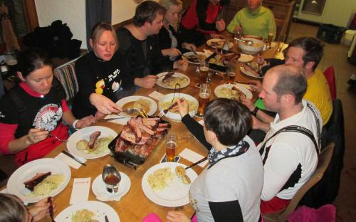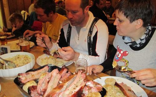 Um 17 Uhr gab`s dann die gebratenen Ripperl und dazu die eine und andere Runde Schnaps, so war es nicht verwunderlich,
