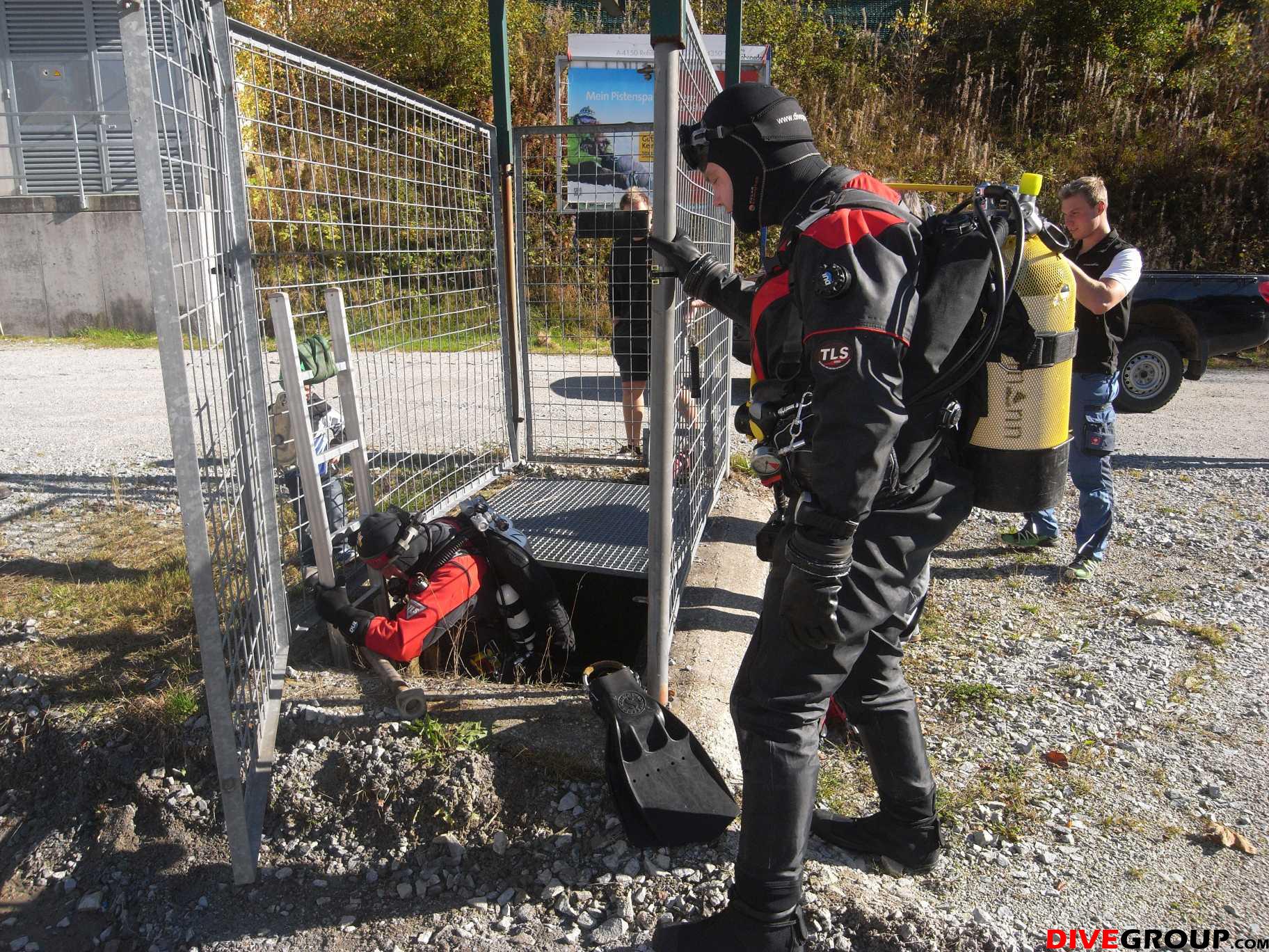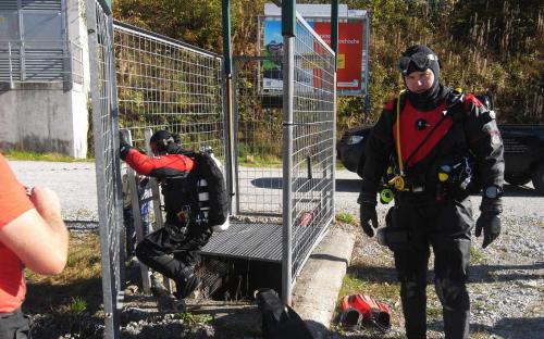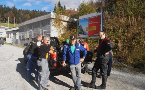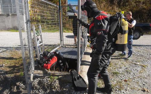 Damit dann hoffentlich in ein paar Wochen die Schneekanonen im Schigebiet Hochficht unbegrenzten Pistenspaß sichern können, war unsere Höhlentaucherfahrung gefragt um den Abfluss des unterirdischen Wasserbeckens zu reparieren. Für Maxl und Siegi war es eine willkommene und interessante Aufgabe die sie gerne erledigten.
