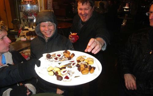 Wie geplant trafen wir uns am 9.12. am Linzer Hauptplatz um unsere Mitglieder Sabine und Gottfried bei ihrem Stand am Christkindlmarkt zu besuchen. Leider war das Wetter nicht sehr winterlich, trotzdem ließen wir uns Punsch, Ofenkartoffel und Gottfrieds Süße Schmankerl schmecken.