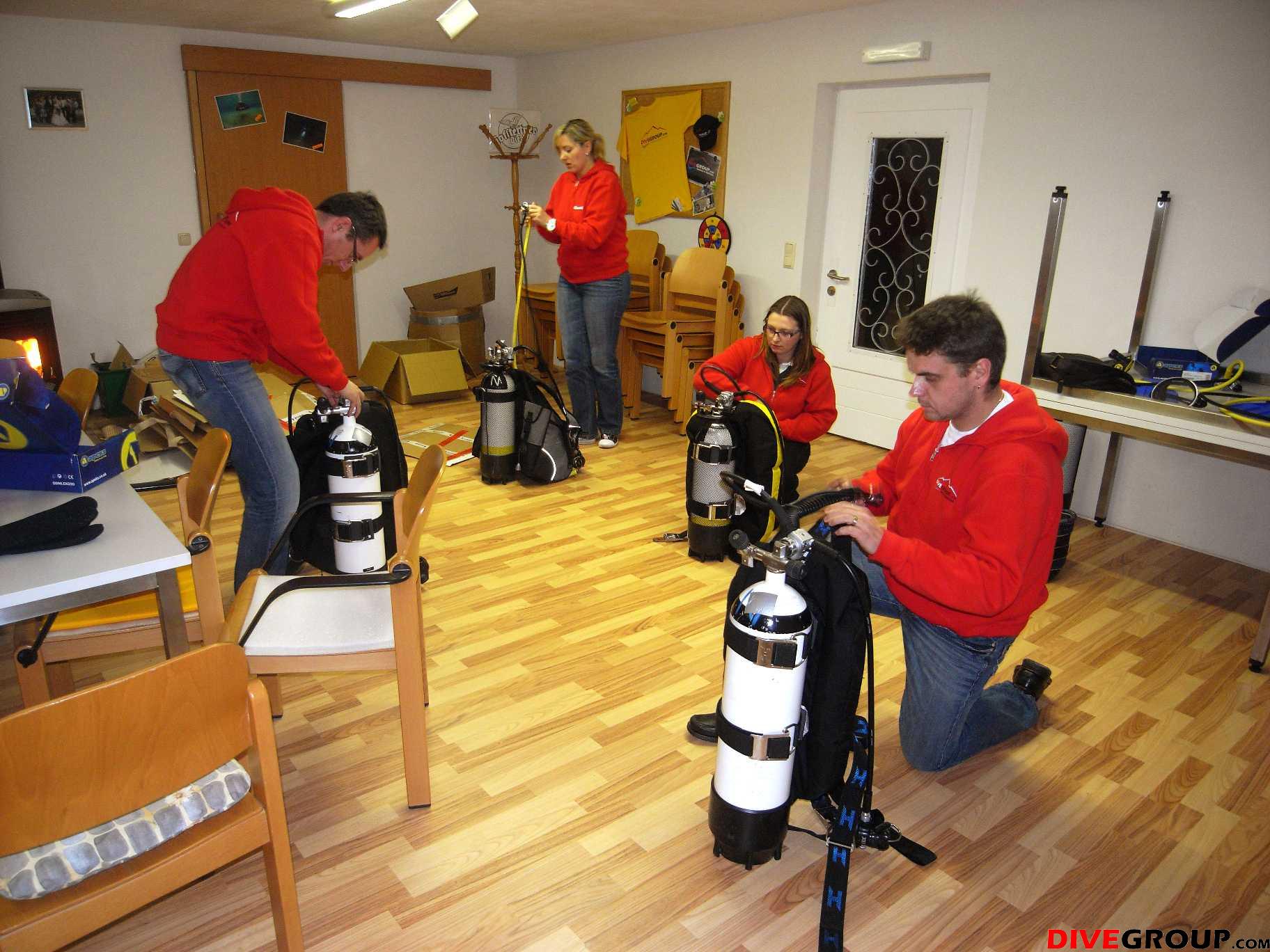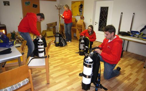 Unsere 4 Neu – Divegroupies Eva, Cornelia, Markus und Christian hatten bereits beim Schnuppertauchen ihre Begeisterung fürs Tauchen entdeckt, so wurde sofort die eigene Ausrüstung angeschafft und möglichst schnell sollte nun den Open Water Diver Kurs absolviert werden.