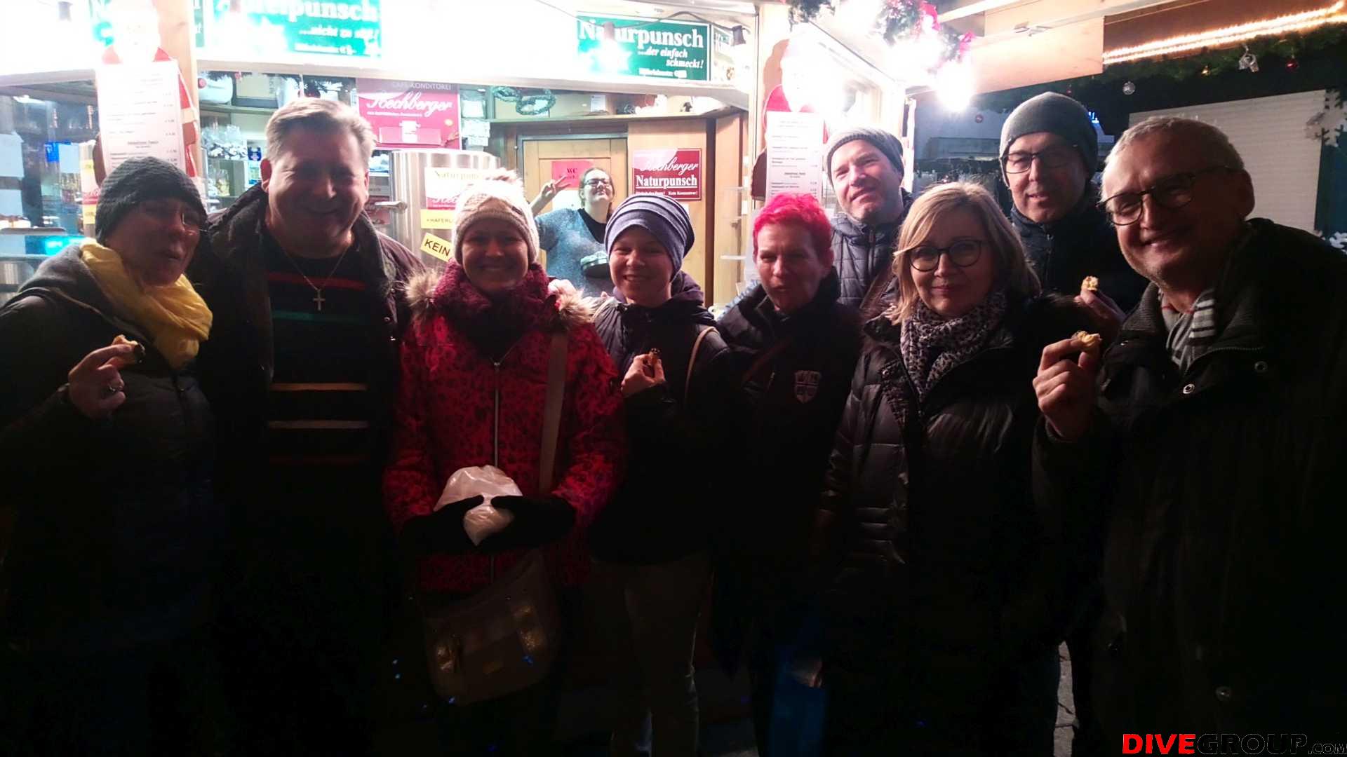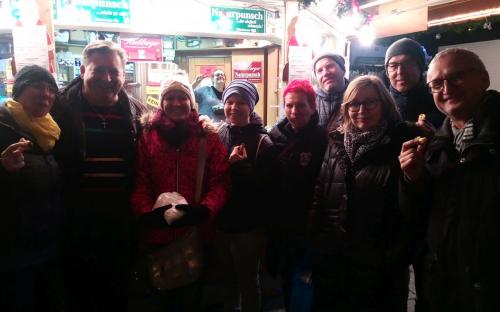Am Mittwoch besuchten wir unseren Vereinskollegen Gottfried auf seinem Standl am Weihnachtsmarkt in Linz. Die Temperaturen passten gut, dass wir es lange dort mit Gottfrieds Spezial Punschsorten und den extra für uns frisch gemachten Leckereien aushalten konnten.