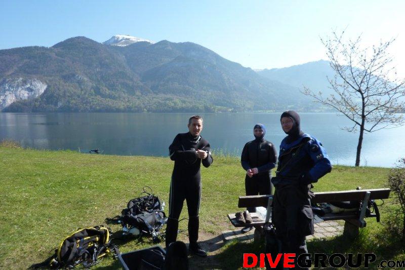 Wir trafen uns um 9 Uhr in St. Gilgen und fuhren dann gemeinsam zur Franzosenschanze. Nach einer ausführlichen Tauchplatzbesprechung und Check der neuen Ausrüstung ging es für Eva und Christian ab zum ersten Freiwassertauchgang im Wolfgangsee. Die frisch gebackenen OWD machten eine gute Figur und waren von dem Tauchplatz mit den muschelbewachsenen Steinformationen hellauf begeister. Nachdem wir unsere Flaschen bei der Füllstation Gamsjaga volltankten und auch wir uns eine kleine Stärkung gönnten, ging es wieder auf nach Hause.
